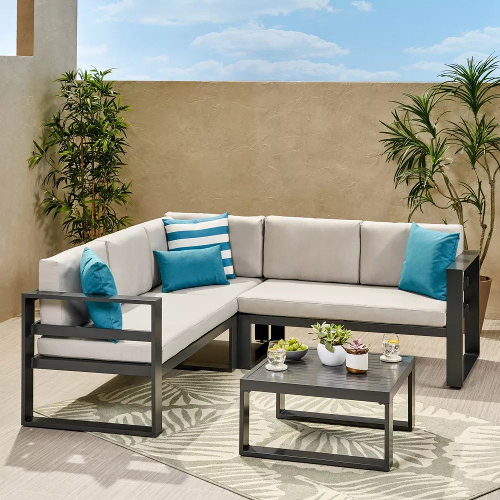 MODERN DESIGN: Our sofa sectional set incorporates clean, straight edges to create a minimalistic look for any patio space. This offers a stunning modern design using sleek aluminum frames with fresh cushions for a chic look.