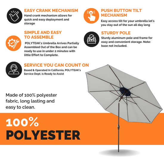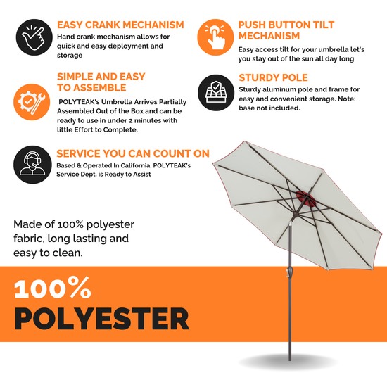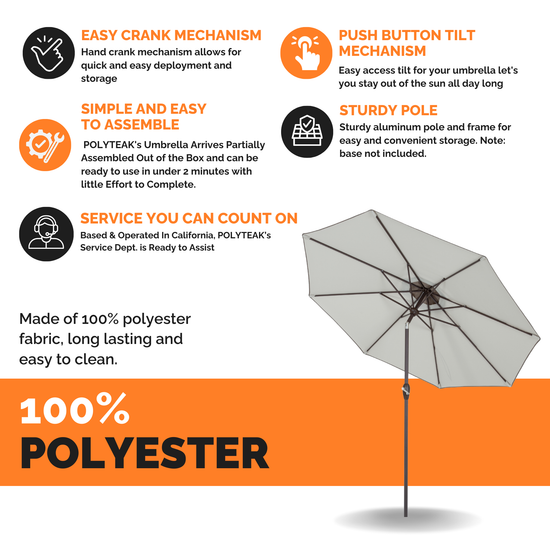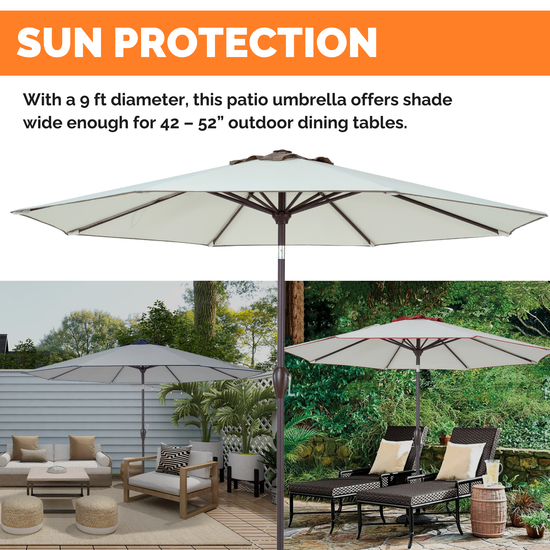 SUN PROTECTION - With a 9 ft diameter, this patio umbrella offers shade wide enough for 42 – 52” outdoor dining tables.
